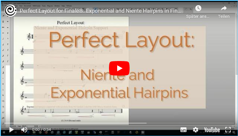 Note: Finale has a problem with the end of the closed side of a hairpin on screen which doesn't match the end position of the hairpin in print (PDF or paper).