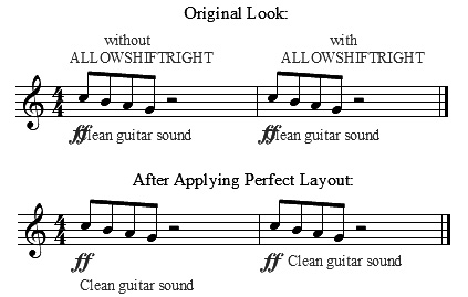 - On documents with handwritten music fonts the default horizontal distance between dynamic and expressive text expressions is automatically slightly increased (e.g. the distance between mf and cresc. on the same measure position)