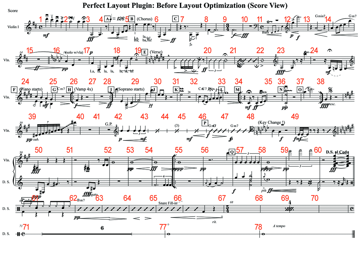 - Multi-measure rests are automatically created/validated. But as this may affect the system layout, it's possible that systems end up on different pages than before or that extra pages are added somewhere in between. Automatic multi-measure rest creation should be avoided if the part has systems with different number of staves (e.g. hidden staves) and many empty measures that would be consolidated to a multi-measure rest. This would massively influence the part layout. In this case create the multi-measure rests manually before calling the plugin and adjust the measure layout to your needs.